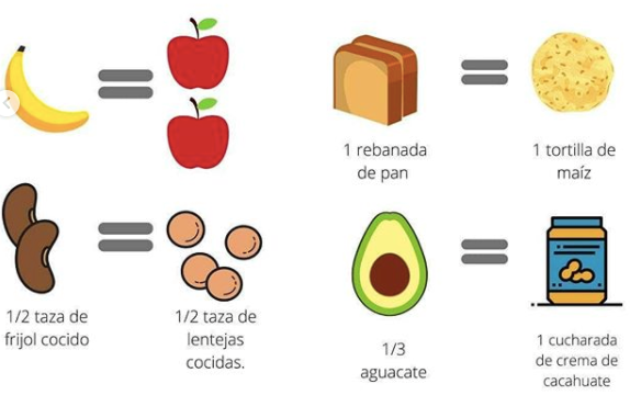 Espero esta información haya sido de su agrado y de verdad les sirva para poder llevar un estilo de vida saludable o simplemente generar nuevas recetas. Aquí te dejo un ejemplo de alimentos equivalentes, cada alimento tiene su equivalente, si te interesa más puedes escribirme.